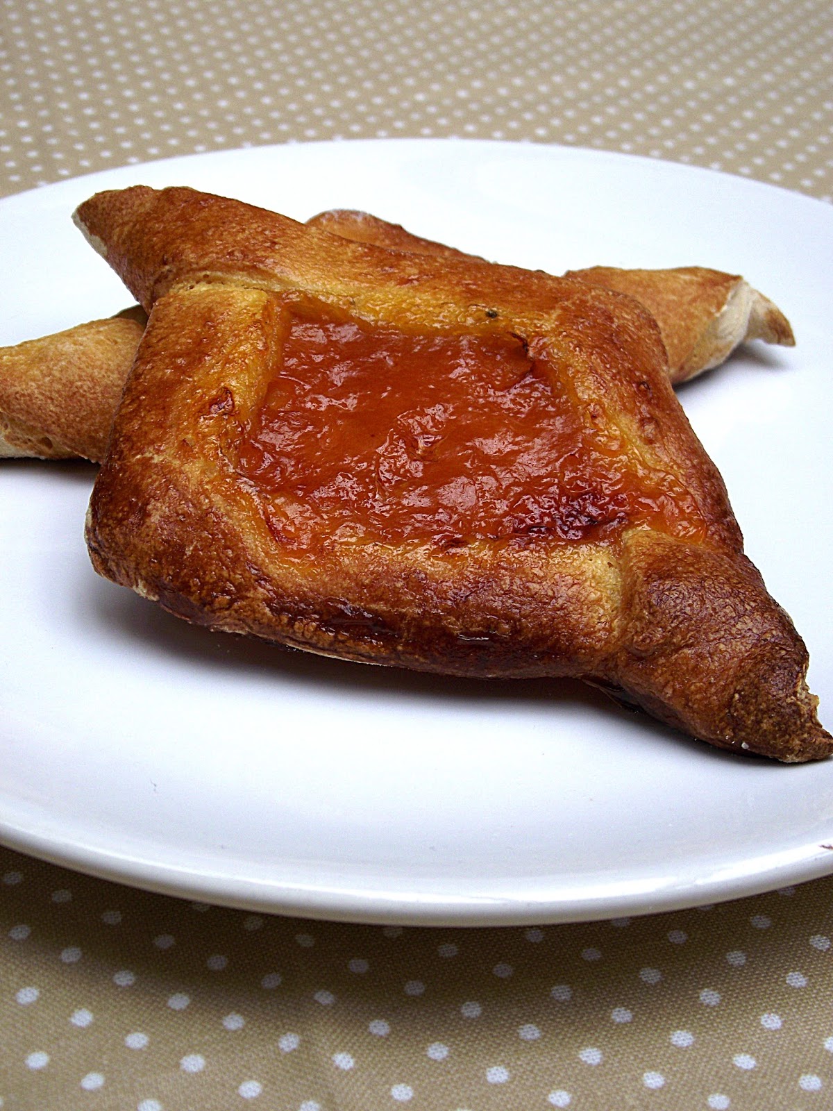 Mikor készen lettem a formákkal, megkentem őket tejes tojássárgájával és a közepébe házi baracklekvárt tettem. 175 fokos sütőben körülbelül 20 percig sütöttem, nagyon-nagyon-nagyon finom lett! :)